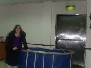 You see, the church in Danshui has no built in baptismal font. Next week I'll send pictures, but this week there is no drive on this computer for that. So, the baptismal font is this...well, the best way to describe it is to say that it is a blue tank. It's kind of a weird looking thing. Nothing like a child's swimming pool in the backyard or anything. Totally unique. Well, to get you a better picture of what this was like, the entire tank itself comes to about my hips. You know, me at 4'11'' and it only comes to my hips. Well, last time there was a service, we actually traveled from Jilong to go to Chen Meishan's (who attended Yan Yuhangs baptism :) ) and the Elders had filled this thing too high, so there was a little flooding in the Primary room. Elder Smith did not want the same result this time, so they didn't fill it quite as full. In fact, I think the water was...pretty darn low. So that was problem one--low water.